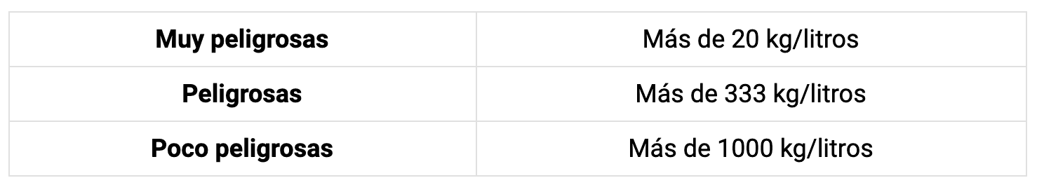 Resumiendo lo anteriormente citado, podemos concluir que todas aquellas empresas que realicen transporte, carga o descarga con responsabilidad de mercancías peligrosas, estarán obligadas a nombrar un consejero de seguridad, así como a presentar un informe anual a las autoridades, siempre que excedan las cantidades reflejadas en la siguiente tabla: